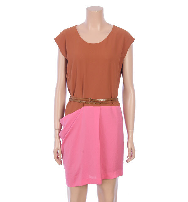 SISLEY, 투톤 배색으로 언발런스한 주름 디테일이 여성스러운 느낌을 더해주는 원피스입니다