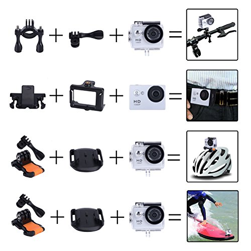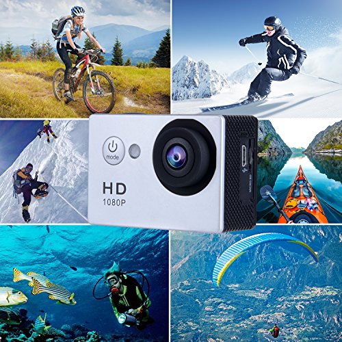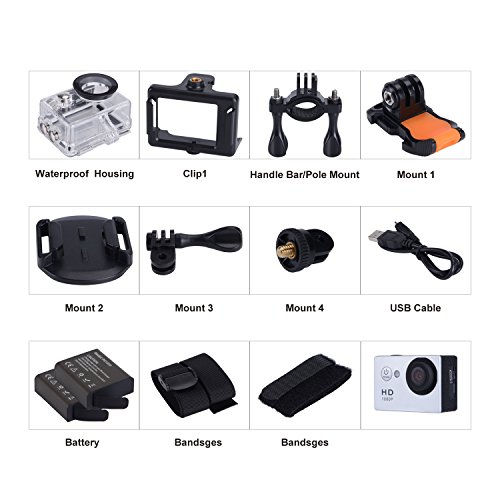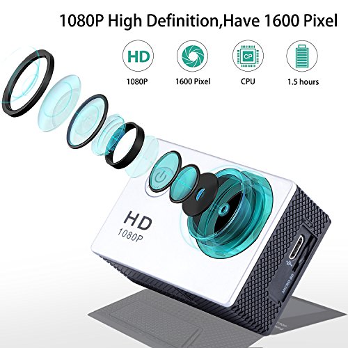 100 feet (30 M) Waterproof: Comes with a clear and durable waterproof case, you could use the camera underwater 30 meters, get amazing shots while zip-lining, diving, swimming, hiking, surfing, skiing, skating etc. An extra battery ensures longtime playing.