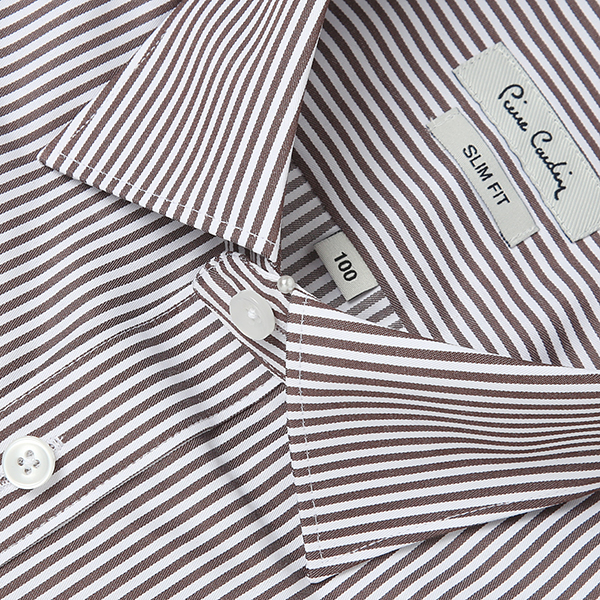 차분한 브라운 컬러의 스트라이프셔츠 입니다