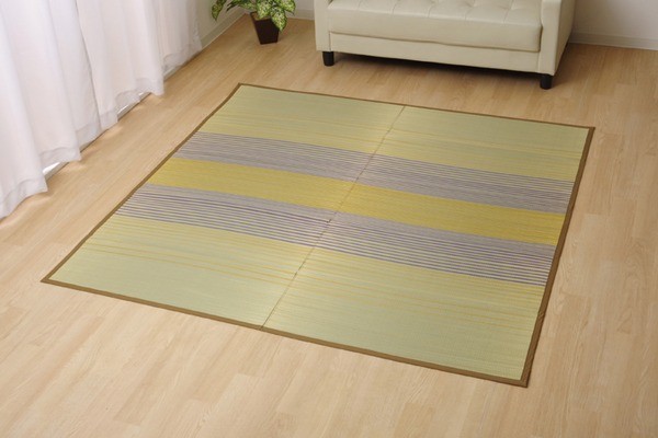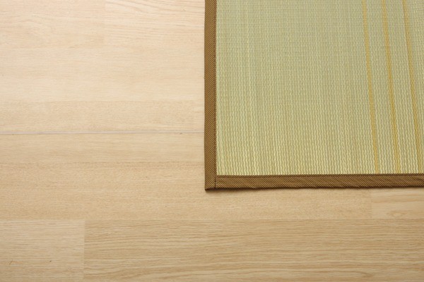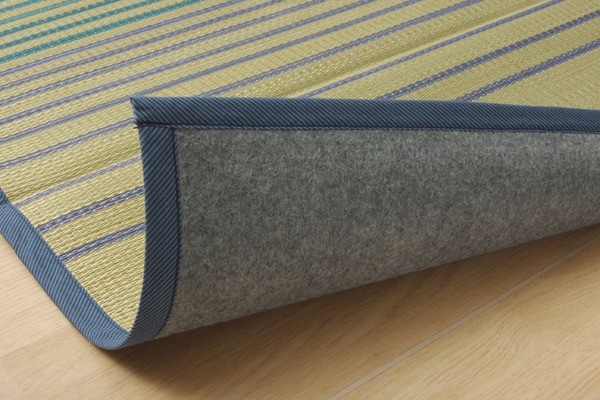 お部屋に敷きやすいカジュアルない草ラグです。裏面には滑りにくい加工をした不織布を使用しているため、フローリングにも最適です。い草には空気の自然浄化作用、湿度の調節作用などがあります。い草に青森ヒバ加工を施しています。(抗菌、防臭効果)
