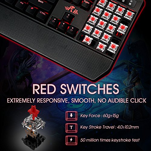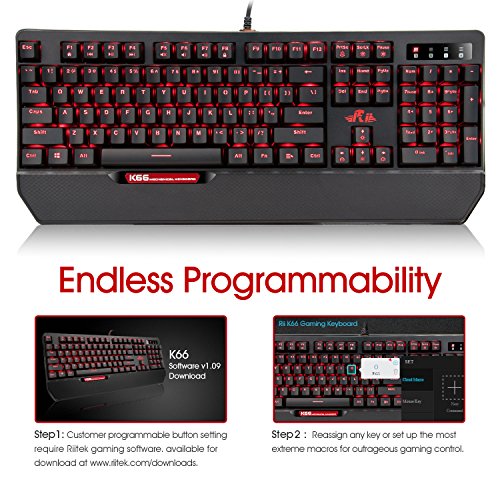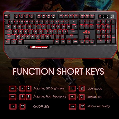 -. Title : Rii Keyboard Mechanical,Keyboard Mechanical Gaming with USB Cable K66,104 Keys with Red Switches,and LED Backlit,(5 Lights effects + 3 Macros),Anti-Ghosting Programmable Gaming Keyboard
