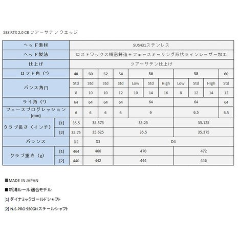 원본상품명: Cleveland GOLF(クリ?ブランドゴルフ) 588 ロ?テックス 2.0 キャビティタイプ ツア?サテンウェッジ 58-12 N.S.PRO 950GH スチ?ルシャフト S 588 RTX