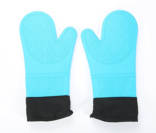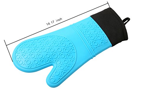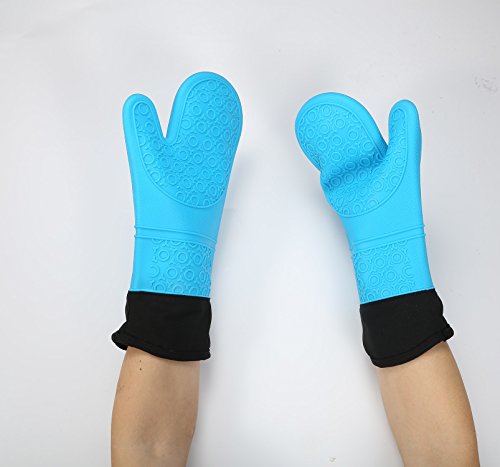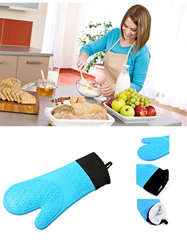 Silicone BBQ Grill Gloves, Oven Gloves, Baking Gloves, Cooking Gloves, Kitchen Gloves, GEYUEYA Home (Blue)