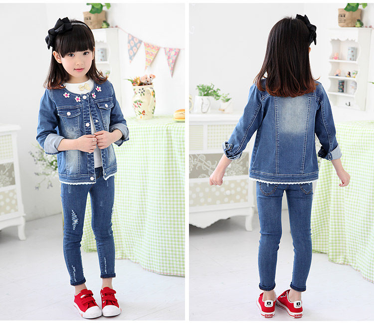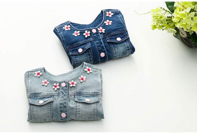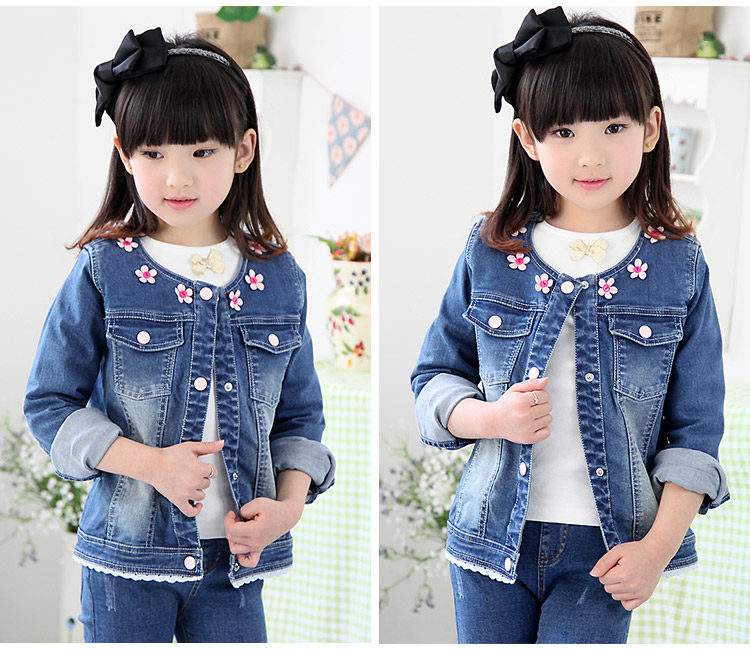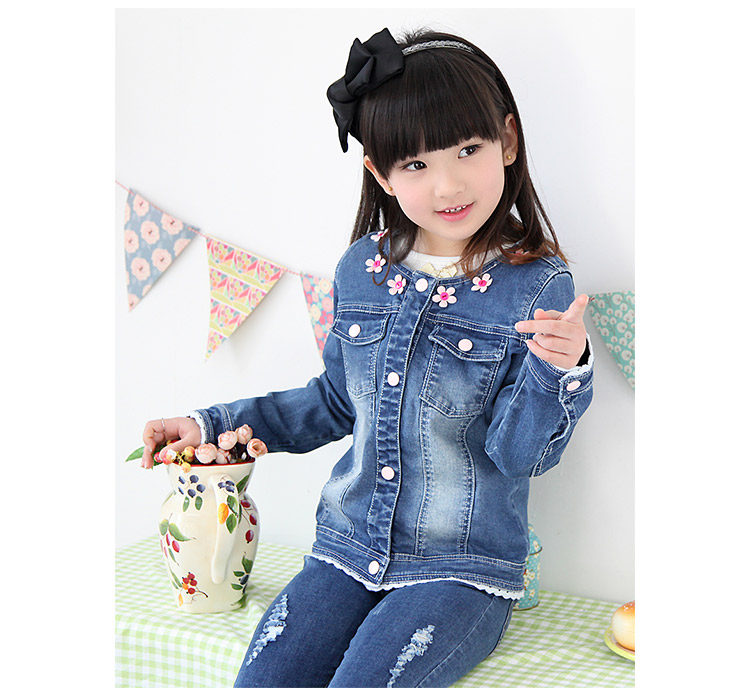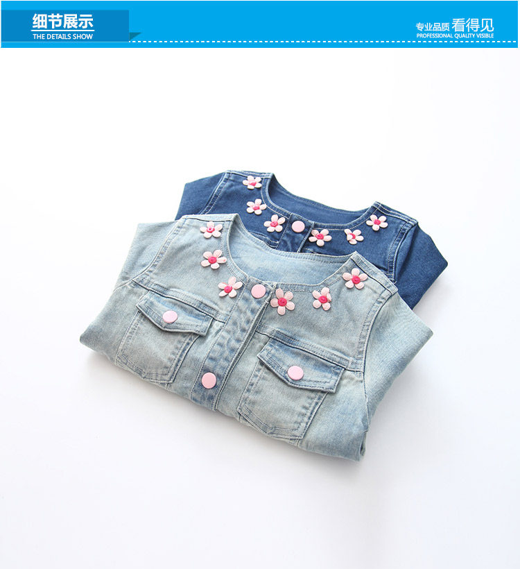 春装韩版新款花朵女童童装 宝宝儿童长袖牛仔外套开衫