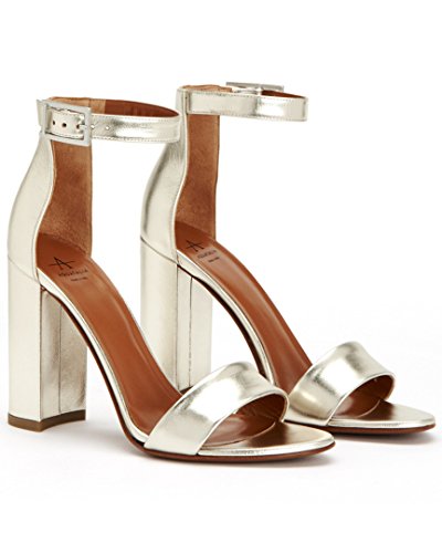 Studio : Aquatalia Publisher : Aquatalia Binding : Apparel Product Description Color/material: platinum leather. Design details: waterproof. Adjustable ankle strap with buckle closure. Lightly padded leather insole. Leather and rubber sole. 3.5in heel. Please note: All measurements are approximate and were taken from a size 6.5; slight variations may occur.. Made in Italy 0