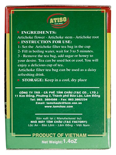 -. Feature : Smooth, naturally sweet artichoke tea has many healthful benefits / 2 gram serving per teabag, 60 total servings / Caffeine Free - Herbal Tea / Tam Chau is a top producer of pure, high quality Vietnamese teas / 3 boxes of 20 teabags packaged with 2 teabags per plastic sleeve