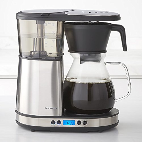 This brewer provides the optimal water temperature, contact time and coffee saturation to brew a perfect pot. A pre-infusion cycle evenly saturates the ground coffee before brewing, an essential step for obtaining the finest flavor from the beans. This model features a glass carafe and digital display.