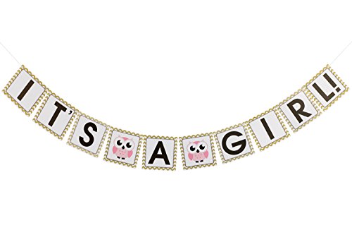 Baby Shower Banner - IT’S A GIRL - Garland Baby Shower Decoration, Photo Booth Props - Owl-Stylish Contemporary Design from Bambini & Me