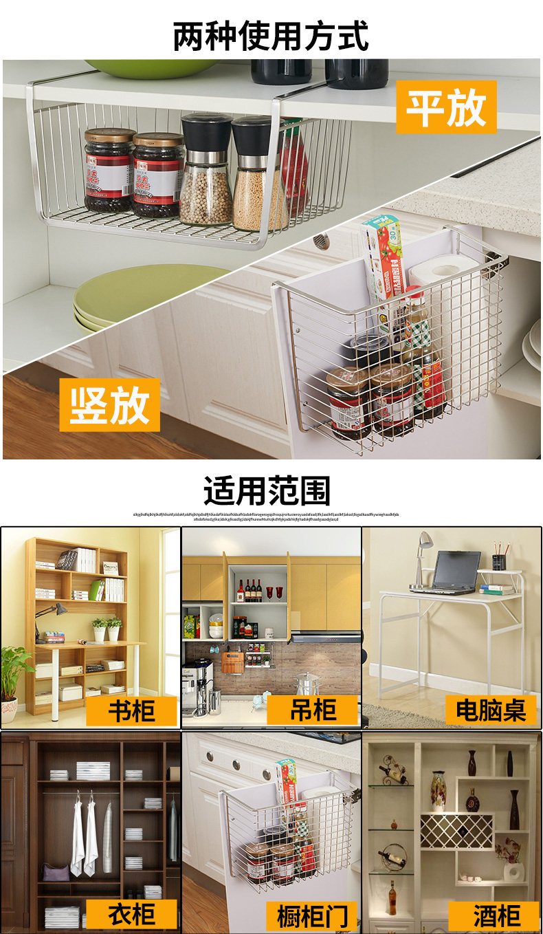 304不锈钢厨房挂篮挂架收纳架整理置物架壁柜板层挂篮收纳篮