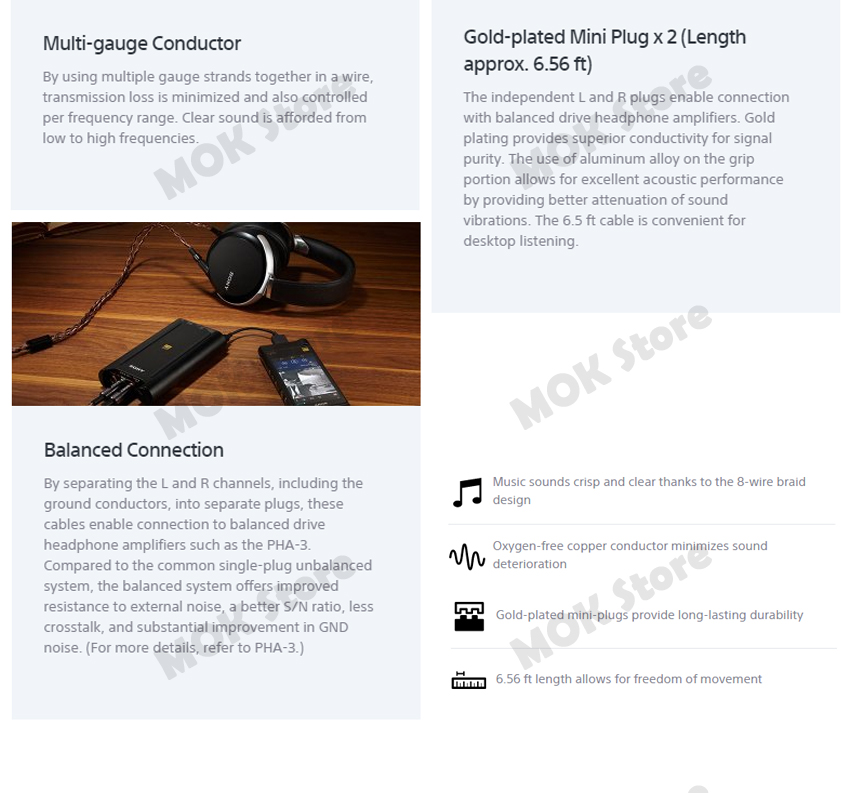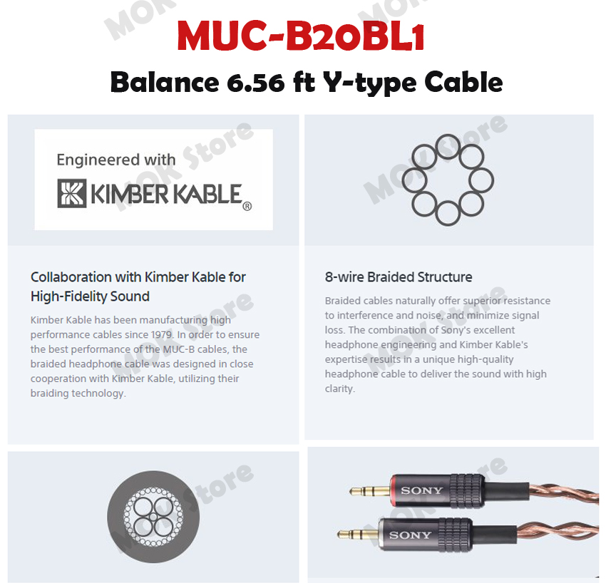 - The MUC-B20BL1 Balanced Audio Cable from Sony is a high-performance and professional oxygen-free copper replacement cable for the MDR-Z7 headphones. It is used to connect the Sony headphones to several audio devices such as MP3 players, portable recorders, computers and more. It features an eight-wire braided cable, with L/R separate ground connectors. The side of the headphones is built with two gold-plated 3-pole 1/8" stereo mini plugs and the player side is a single gold-plated, 3-pole balanced mini jack.