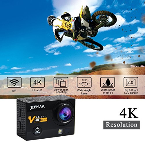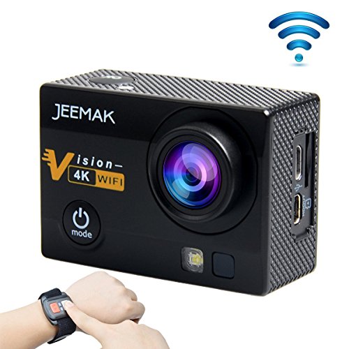 【New Design FULL HD Sport Camera】JEEMAK Action Camera with WI-FI function & 2.4G wrist remote control supports up to 16M. It shoots 4K and an impressive 1080P video for slow motion capture. Including time-lapse and loop recording makes this an excellent choice for professional videographers and home users who want flexibility in video quality and resolution.