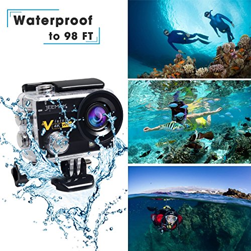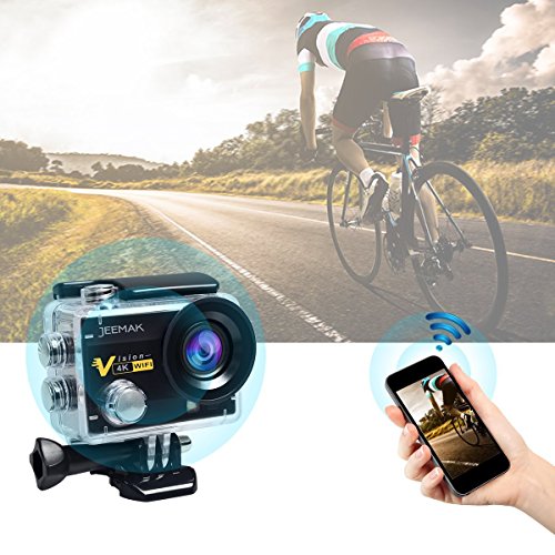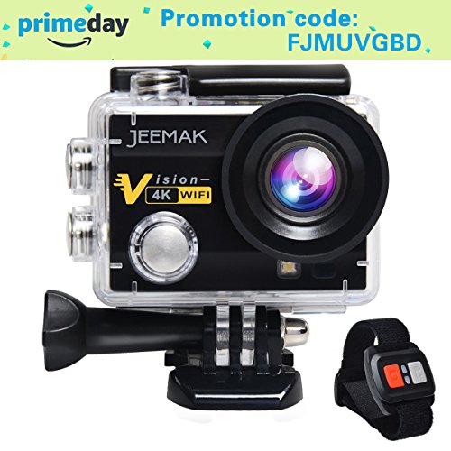 Jeemak 4K Action Cam 16MP WiFi Waterproof Sports Camera 170° Ultra Wide Angle Len with SONY Sensor,Remote Control 2 Pcs Rechargeable Batteries and Portable Package