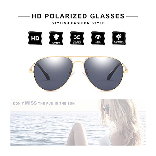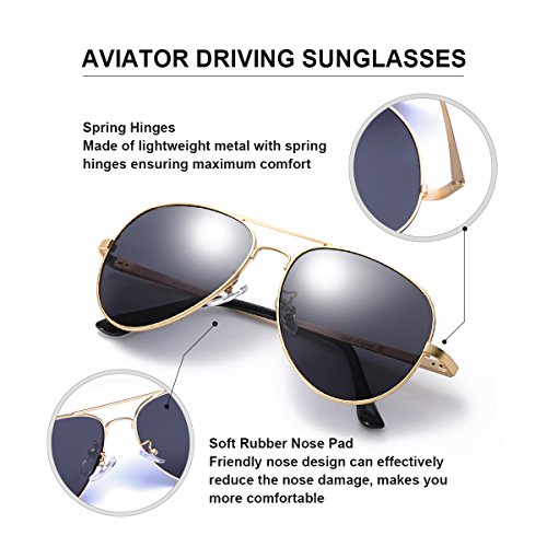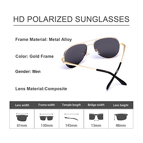 Classic Aviator Polarized Sunglasses with UV 400 Protection Anti Glare Sun Glasses for Men Driving/Fishing (Gold, Grey)