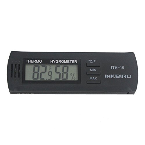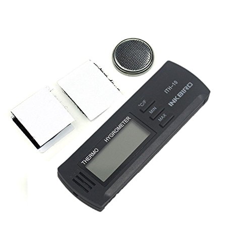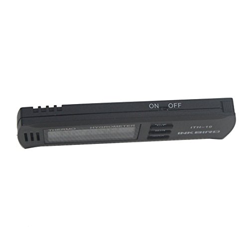 Studio : Inkbird Tech Publisher : Inkbird Tech Binding : Kitchen Product Description Description: Digital Thermometer and Hygrometer ITH-10 is super thin designed, cabinet and exquisite, simultaneous display of temperature and humidity. It can memorize maximum and minimum temperature, humidity values and switch between ℃ and ℉. Suitable for household, guitar case, green house, office and labs. Features: Temperature measuring range: -5~ 50℃ (23℉~122℉) Humidity measuring range: 30%RH~90%RH Resolution: 1 Accuracy: Temperature: ±1℃; Humidity:±5%(25℃) Power supply: DC3.0V, one button battery CR2032 Item Size: 3.94 x 1.26 x 0.39 (inch) Package Content: 1 × DC 3V Digital Hygro - Thermometer ITH-10 1 x CR2032 Battery 2 x Velcro 1 x Manual 0