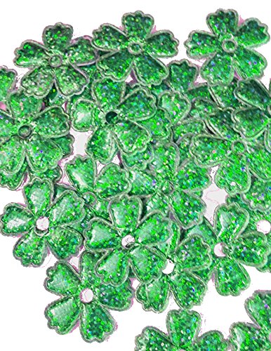 Green Metallic Flower Shape Applique 30 Per Pack