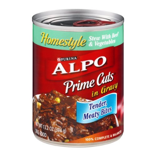 Guaranteed analysis: Crude protein (min) - 9.5%. Crude fiber (max) - 1.5%. Crude fat (min) - 3.0%. Moisture (max) - 80.0%. Trademarks owned by Societe Des Produits Nestle S.A., Vevey Switzerland. Purina Alpo prime cuts in gravy homestyle stew with beef & vegetables is formulated to meet the nutritional levels established by the Association Of American Feed Control Officials (AAFCO) dog food nutrient profiles for all life stages. Steel, please rec
