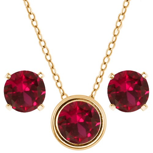 -. Binding : Jewelry -. Brand : Gem Stone King -. Color : Red -. Department : womens -. Feature : 3.00 Ct / 6mm Round Red Created Ruby / 14K Yellow Gold Pendant Earrings Set / With 18 Inch 14K Yellow Gold Chain / Gemstones may have been treated to improve their appearance or durability and may require special care. -. Model : WRC-0173-RD-CR-R-CR-R-YG14K -. MPN : WRC-0173-RD-CR-R-CR-R-YG14K -. NumberOfItems : 1 -. PackageQuantity : 1 -. PartNumber : WRC-0173-RD-CR-R-CR-R-YG14K -. ProductGroup : Jewelry -. ProductTypeName : FINENECKLACEBRACELETANKLET -. Title : 3.00 Ct 6mm Round Red Created Ruby 14K Yellow Gold Pendant Earrings Set