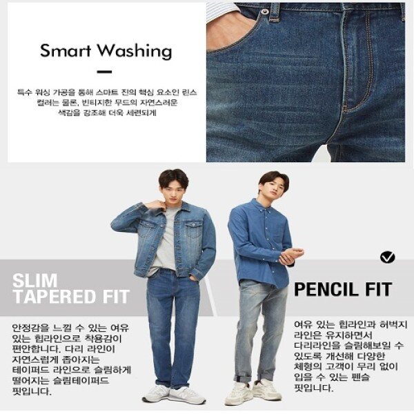 허벅지부터 다리라인이 좁아지는 펜슬핏으러 세련되고 길게,힙과 밑위,허벅지 라인을 업데이트해 착용감음 더욱 편안하게
