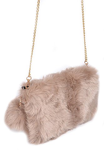-. Title : Womens Faux Fur Fluffy Square Clutch Shoulder Bag W/ PomPom PPC5718