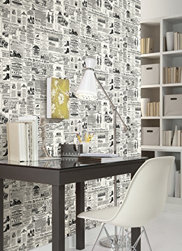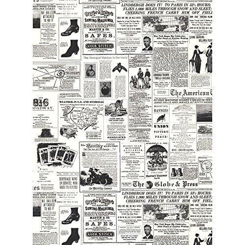 York Wallcoverings KW7620 Book Headline News Wallpaper, White/Black