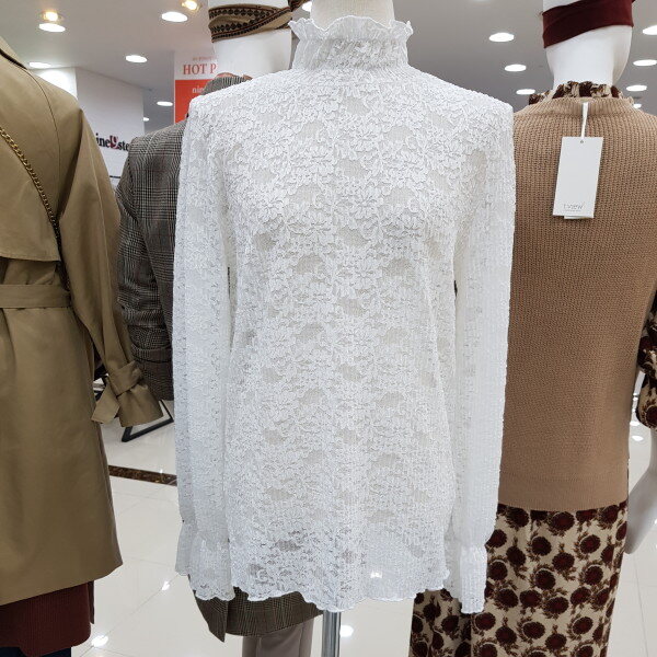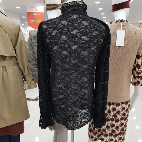 하이넥과 퍼진 소매,전체 레이스를 통해 고풍스러운 분위기를 연출하여줍니다. 하이넥이지만 넥부분 밴딩처리가 되어있어 답답하지않습니다^^
