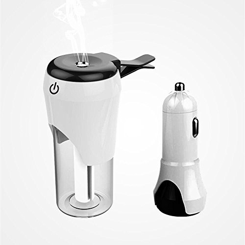 -. Feature : 4-IN-1 COMPACT DESIGN: Car Humidifier + Car Aroma Diffuser + Air Purifier + Dual Rapid 2.1A+1A USB Charger, Suitable for Car, Home, Yoga, Office, SPA and Bedroom. Could meet all your needs. / MULTI-FUNCTION CAR DIFFUSER: Improve Air Quality And Prevents Damage From Second-hand smoke, Stale Air And Allergens, It functions as an ionizer by releasing negative ions into the air which combat harmful positive ions. This provides many health benefits e.g. improves breathing, strengthen the immune system, help to lift your mood and relieve stress. / AUTO POWER-OFF PROTECTION: The car humidifier has auto power-off protection function, after using for 1 hour, it will turn off automatically. please refill the ingredients and press the touch button again If you want to keep using. / 2 OPERATING MODE: Press the button to change the mode ,humidifier and essential oil diffuser(Works with ordinary tap water, plus 2 to 3 drops of essential oil )swab is not a one-time accessories. Clean it with pure water rather than replace it. 3) Add water, waiting for about 20mins, after the cotton rod completely absorbed water. And then turn on. / EASY TO USE: Just fill up the cup with water, after the internal filter was soaked, plug the device into your USB port and press the on/off button.Auto turning off after continued 1 hours use. Auto power off without running dry when water in the bottle is run out.