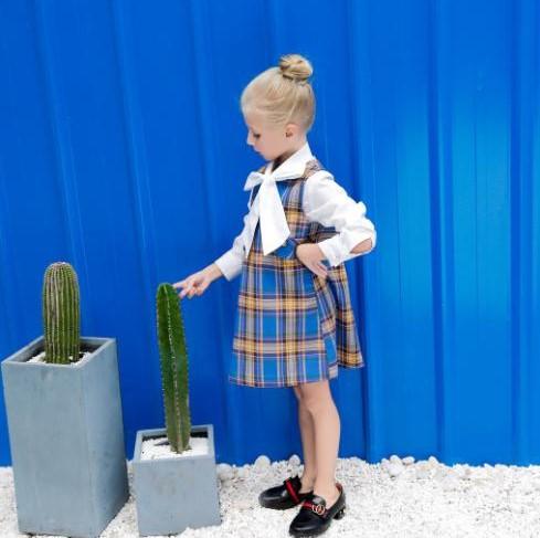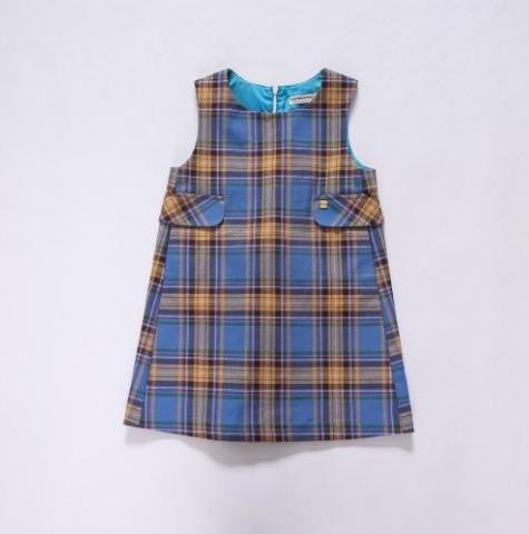 ・キーワード:チェック柄 ブルー 茶色 ノースリーブ キッズファッション キッズワンピース 秋冬 ゆったり おしゃれ 2018年トレンド ワンピース
