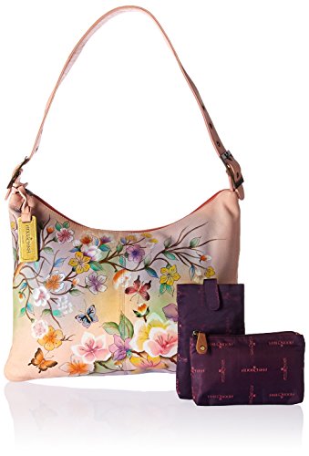 -. Title : Anuschka Handpainted Leather Slim Large Hobo-Japanese Garden