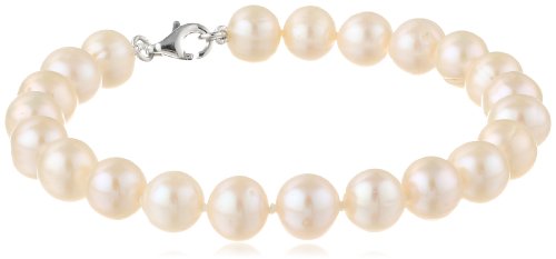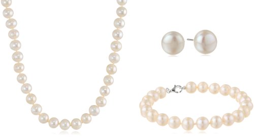 Sterling Silver White Freshwater Cultured Pearl Necklace, Bracelet and Earrings Jewelry Set (7-8mm)