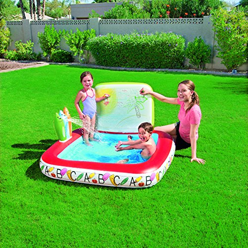 Studio : ToyCentre Publisher : ToyCentre Binding : Toy Product Description 1.32m x 1.32m x 81cm (52" x 52"x 32") safety valves sturdy pre-tested vinyl water sprayer attaches to garden hose 5 erasable crayons easy to use drain valve to release pool water repair patch full color box designed water capacity: 121 l ( 32 gal.) 0