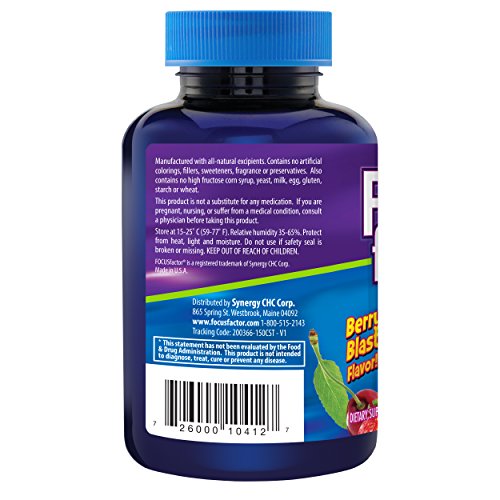 -. Feature : Focus Factor Kids is Americas favorite kids vitamin for focus and healthy brain function / Formulated with choline to help support healthy brain function / Great Tasting Berry Blast Chewable vitamins / Free of preservatives, collagen, gluten, and dairy. No synthetic colors, artificial flavours, or artificial sweeteners. / Allergy free, great tasting kids multivitamin / MANUFACTURED IN USA with premium ingredients