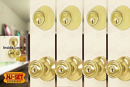 -. Title : NuSet Contractor Combo Lockset, 4 Sets of Keyed Entry Door Lock with Single Cylinder Deadbolt, Same Key, Polish Brass