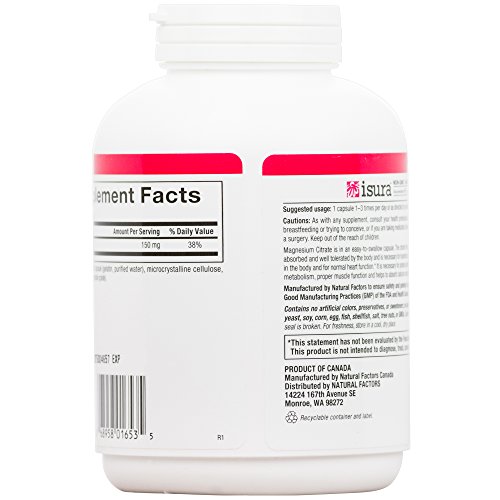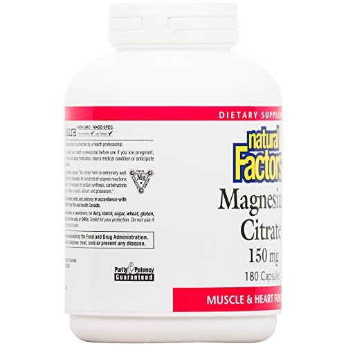 ReleaseDate : 2014-03-19 Studio : Natural Factors Publisher : Natural Factors Binding : Health and Beauty Product Description Magnesium is vital to hundreds of enzyme reactions and has more health benefits attributed to it than any other mineral including calcium. Magnesium, along with calcium, is better absorbed in citrate form. Studies show that mineral citrates have superior absorption especially when taken on an empty stomach. Magnesium is an important electrolyte which helps the absorption of calcium, phosphorus, sodium and potassium. Magnesium is required for the B vitamins to work properly and is absolutely necessary for the utilization of thiamine. Magnesium is necessary for growth and development, wound healing, immune system function, temperature regulation and many activities of the brain and nervous system. 0