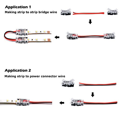 With 2 connector and a wire, you are able to diy a strip-to-strip-jumper wire in order to extend strip light with any angle or direction. The length of this jumper wire can be decided by you fully.