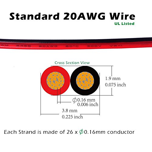 9.84 Feet / 3 Meter 20 Gauge 2 Conductor Extension Wire UL Listed