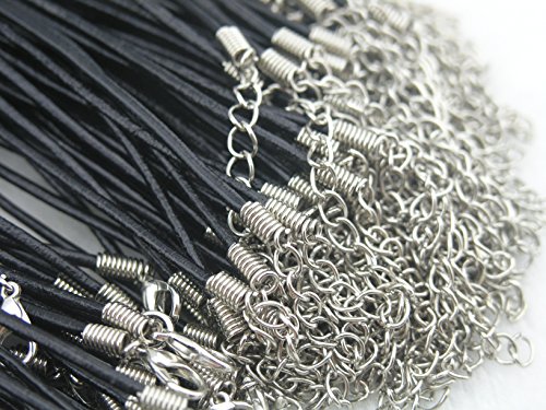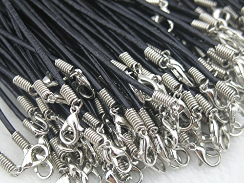 - Feature : Package of 50pcs real leather necklace cord / dull silver Zinc Alloy clasp(free of Lead and Nickel) / Length in 26'', plus 2'' extension chain / Size of the cord is approx. 2.0mm / Color in Black