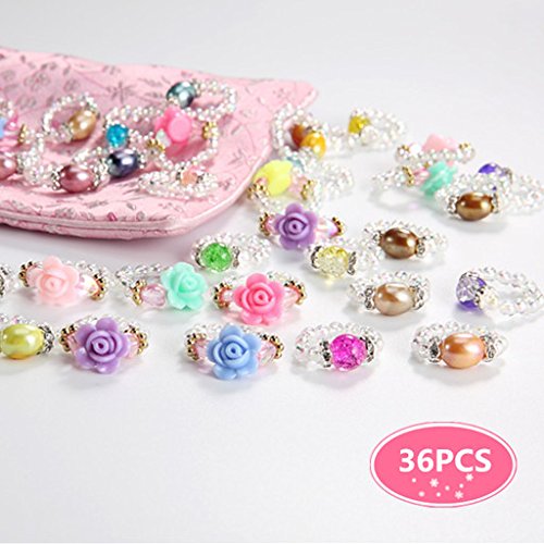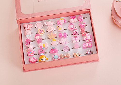 UNIQUE DESIGN--Designs of 36 pink rings that will make your daughters mesmerized. Usage of pink colors and lovely designs, no duplication, shown as picture.