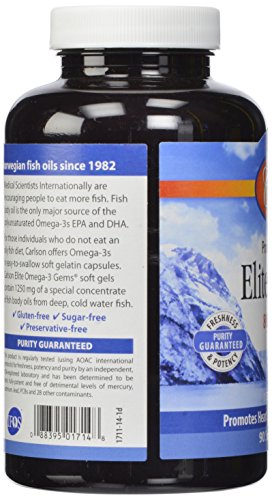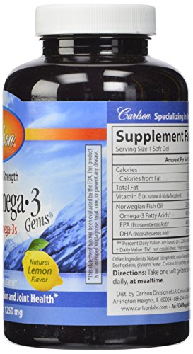 Carlson Labs Elite Omega-3 Gems Fish Oil Soft Gels, Natural Lemon Flavor, 120 Count
