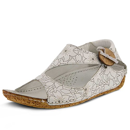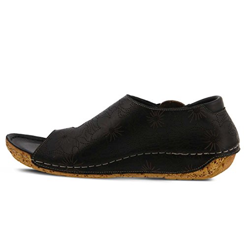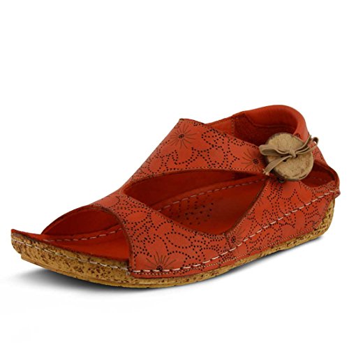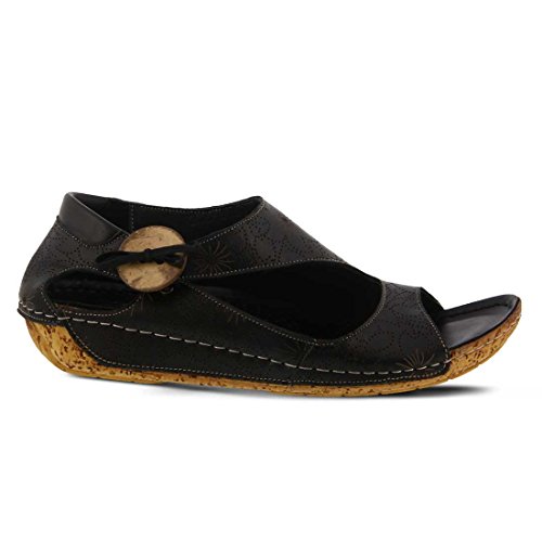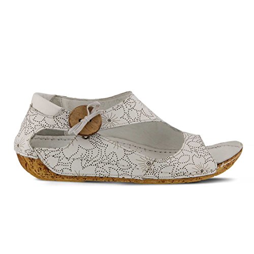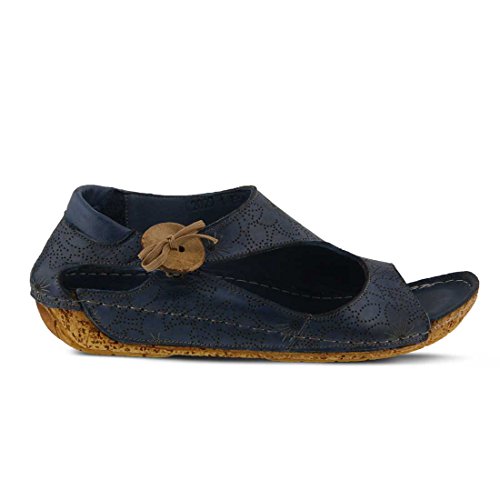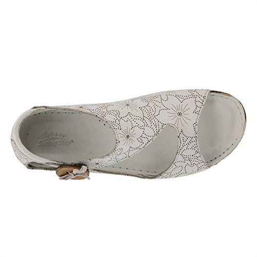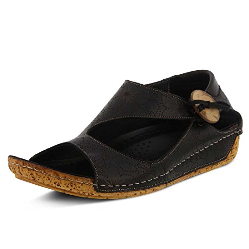 Binding : Apparel Product Description Stay on the right side of fashion with the Spring Step Lorelle Asymmetrical Sandal. Blending European inspiration and style, this sandal features a decorative wooden button, cork-inspired textured wedge and a floral design across the upper. With its padded insole you'll experience all day comfort in this stylish shoe. Decorative wooden button detail Cork-inspired textured wedge Padded leather insole Hidden elastic goring Leather lining. 0