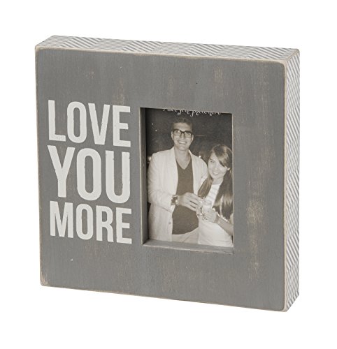 -. Binding : Misc. -. Brand : Primitives By Kathy -. Color : Gray -. EAN : 0883504236263 -. Feature : 10" square frame holds 4" x 6" photo / Made with high quality wood & glass with a distressed paint design / Box sign frames are specially designed to freely stand on their own or hang on the wall / Primatives; Cathy; word sign; sentiment sign; trash talk by Annie; humor -. IsAutographed : 0 -. Label : Primitives by Kathy -. Manufacturer : Primitives by Kathy -. Model : 23626 -. MPN : 23626 -. PackageQuantity : 1 -. PartNumber : 23626 -. ProductGroup : Home -. ProductTypeName : HOME -. Publisher : Primitives by Kathy -. Size : 10-Inch by 10-Inch -. Studio : Primitives by Kathy -. Title : Primitives by Kathy Gray Box Frame, 10-Inch by 10-Inch, Love You More -. UPC : 883504236263