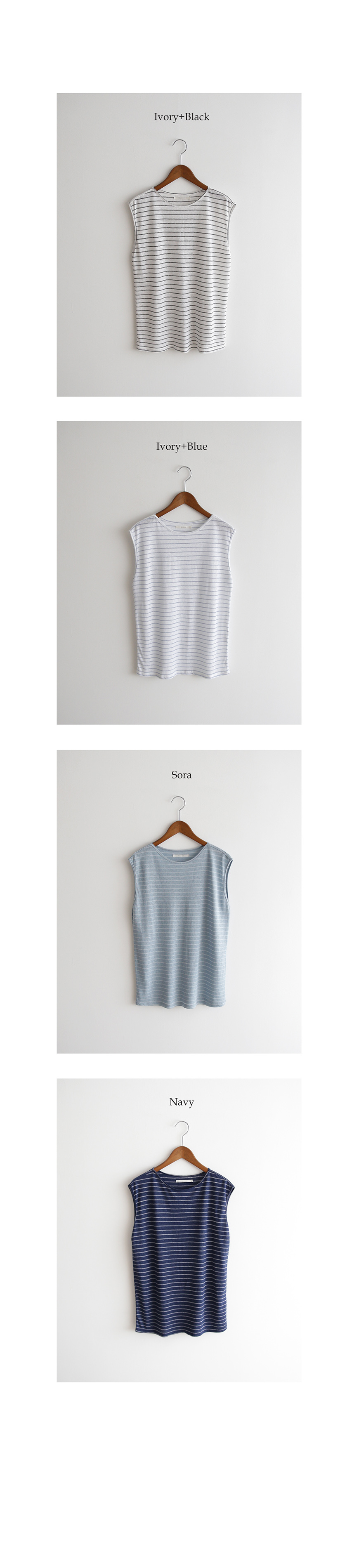 밋밋하지 않게 포인트가 들어간 민소매 티셔츠예요~