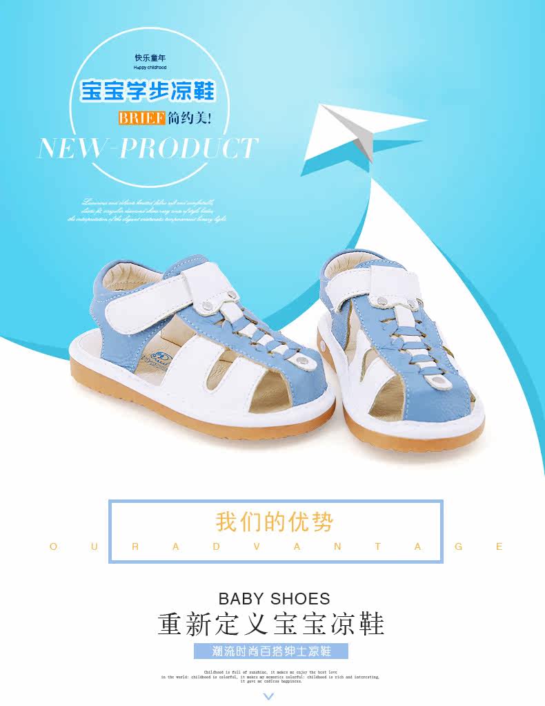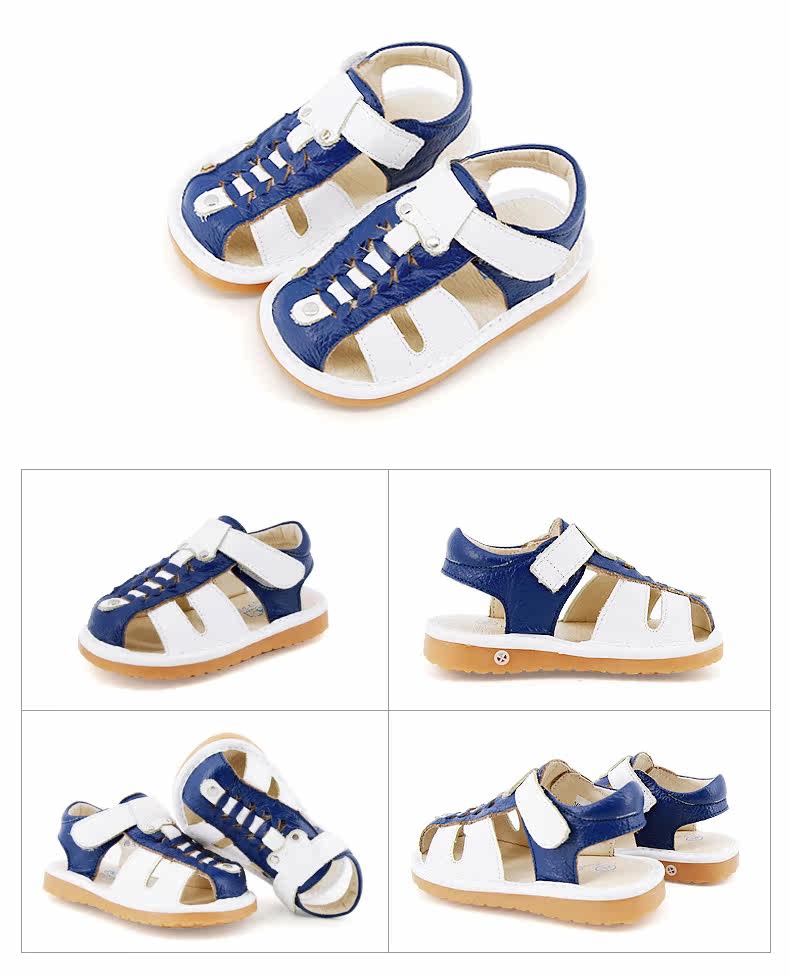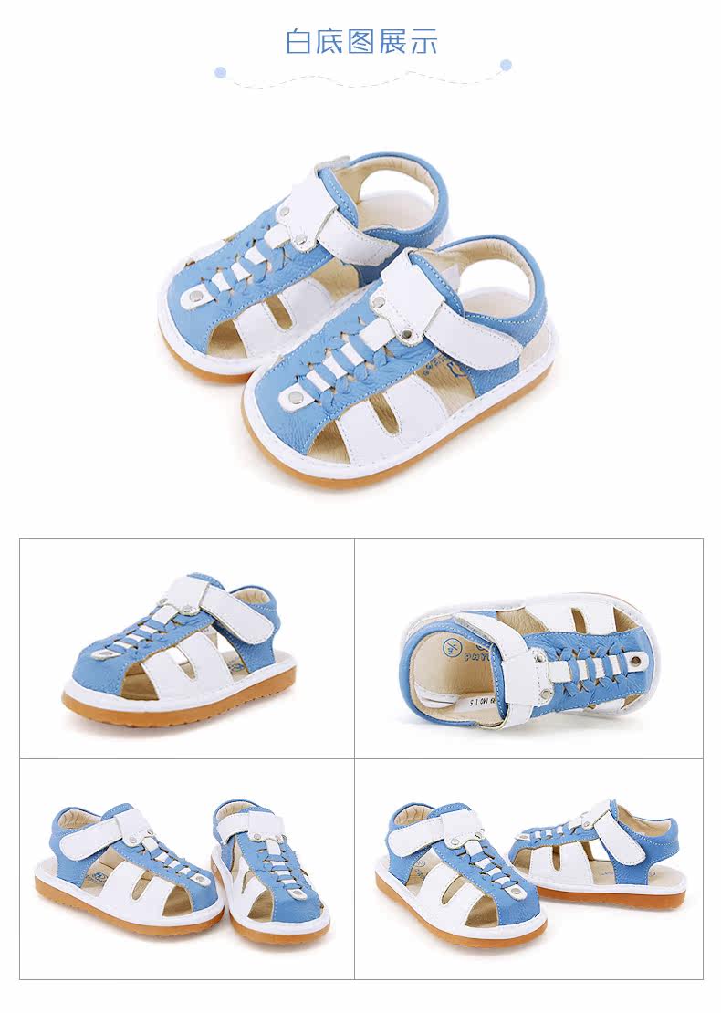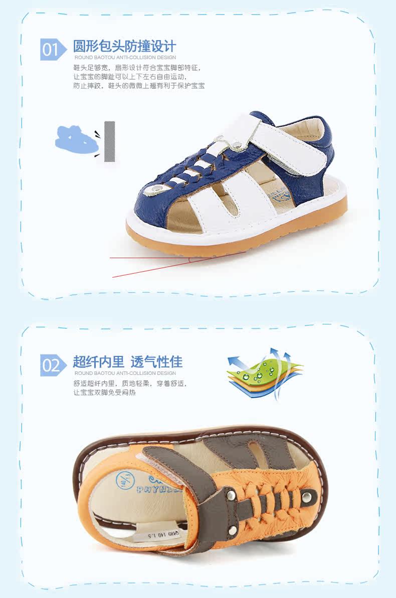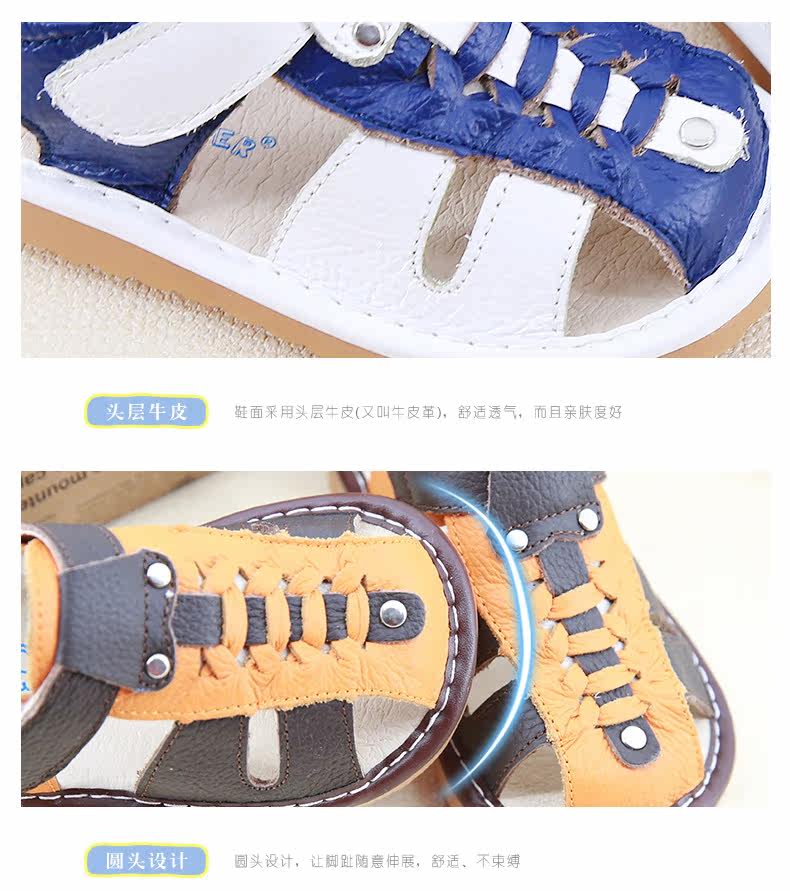 夏季新款男宝宝学步鞋包头凉鞋牛皮编织凉鞋男童叫叫鞋
