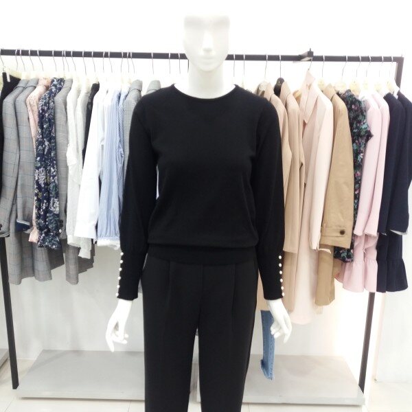 티렌 라운드니트에 퍼프소매진주장식이 포인트되는 니트입니다 색 감 너무이쁜 니트이구요 핏감이 너무붙지안아 편하게 착용하기좋은제품입니다