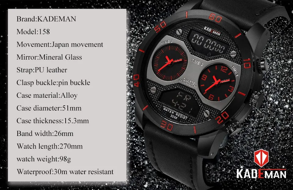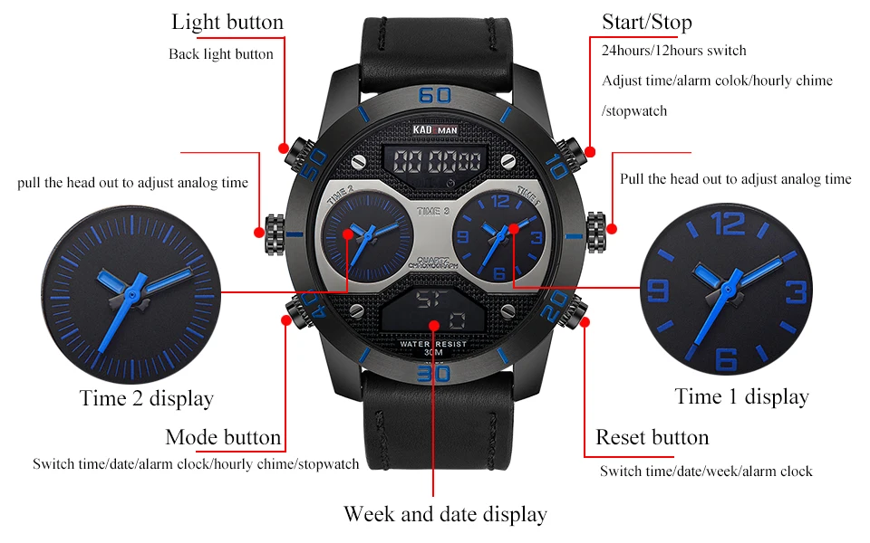 Feature:Complete Calendar,Shock Resistant,Stop Watch,LED display,Auto Date,Week Display,Water Resistant,Chronograph,Swim,Alarm,Repeater