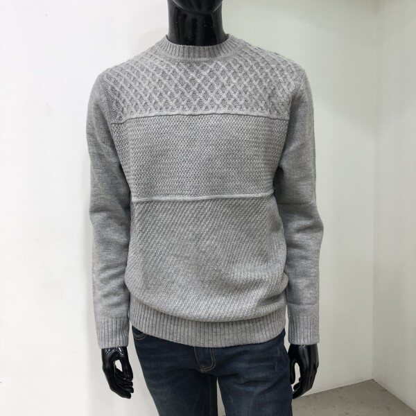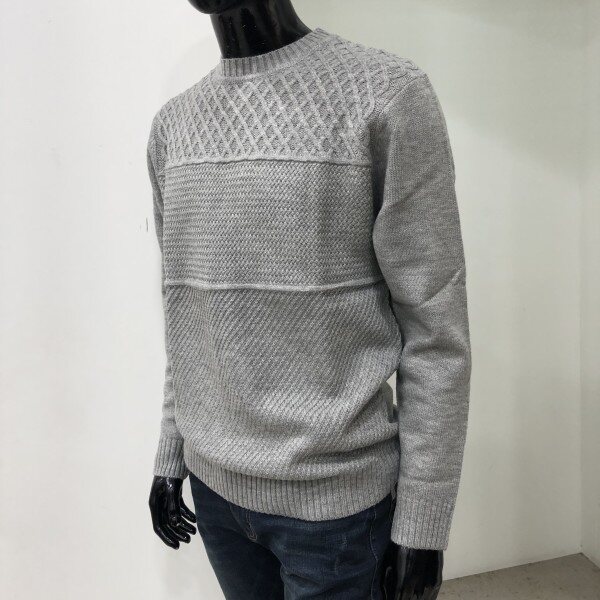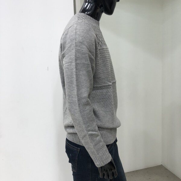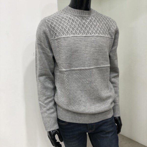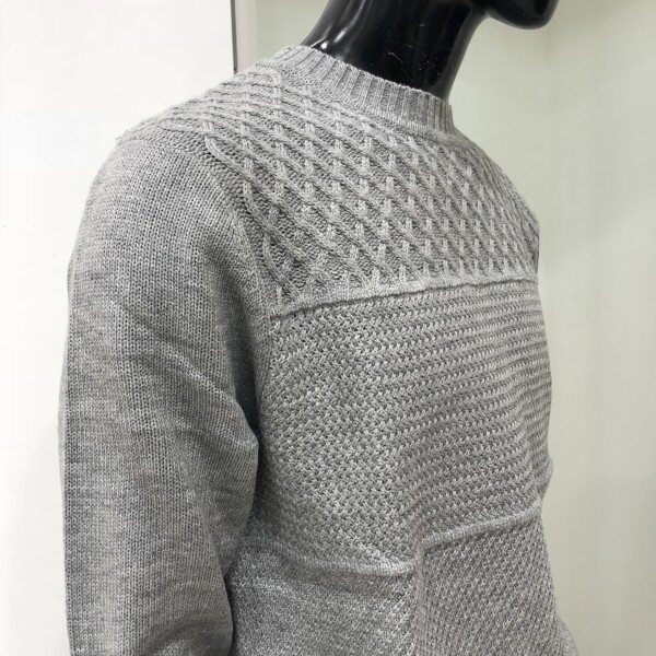 피셔맨조직과 라빈조직 양두조직의 서로 다른 조직감의 매치가 돋보이는 스타일로 캐주얼한 코디가 용이한 라운드넥 스웨터입니다.