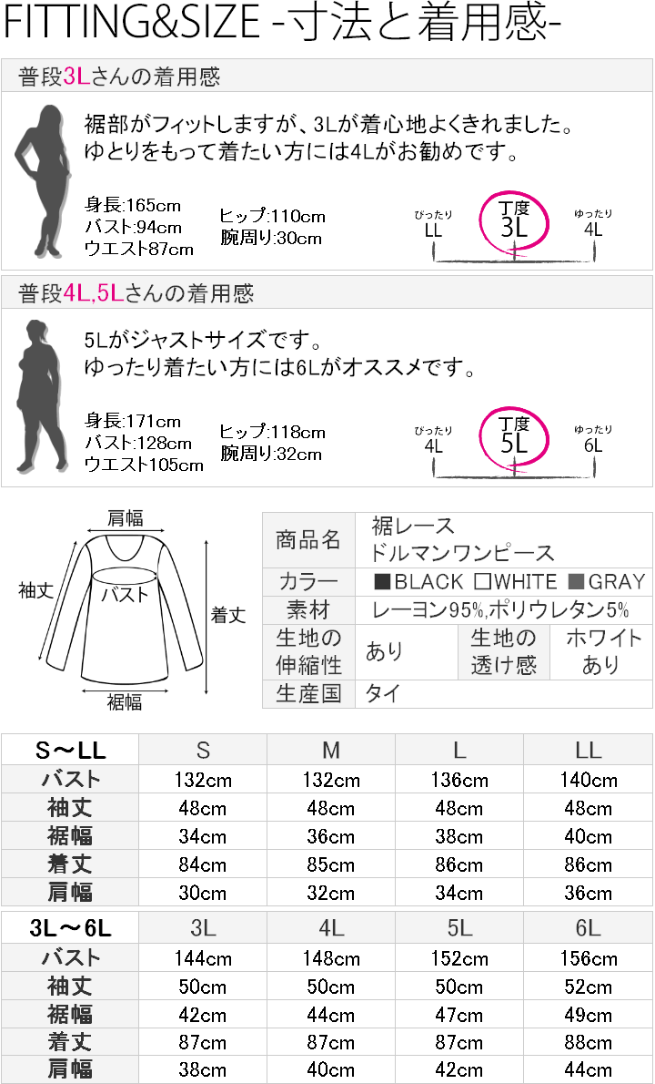 裾レース ドルマン ワンピース(GU) 大きいサイズ 春 セクシー レディース ギャル服 ギャル 大人 13号 15号 17号 19号 LL 2L 3L 4L 5L 6L 6L