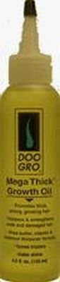 Doo gro mega thick growth oil promotes thick, strong, growing hair. Promotes thick, strong, growing hair. Thickens and strengthens weak and damaged hair. Shea butter, vitamin and botanical thickener formula. Tames frizzles and adds shine. No harmful chemicals.Feature