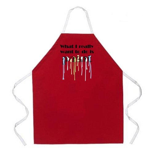 Attitude Aprons Fully Adjustable Want to Paint Apron, Red,