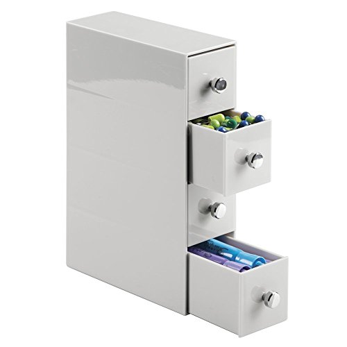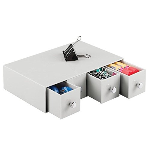 mDesign Office Supplies Desk Organizer for Paper Clips, Sticky Notes, Highlighters, Tape - 4 Drawers, Light Gray