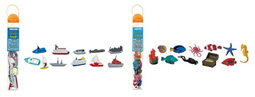 -. Feature : UNDERWATER ADVENTURE: Venture out into the high seas with the In the Water TOOB® that includes a jet ski, steam boat, zodiac raft, submarine, cargo boat, motorboat, windsurfer, battleship, cruise liner, sail boat, and a tug boat, there's no shortage of ways to sail out into the wild blue yonder. The Coral Reef TOOB® includes a parrot fish, clown trigger fish, angel fish, blue tang, octopus, starfish, seahorse, coral, cowry shell, clown anemone fish, and a scuba diver and treasure chest! / TOYS THAT TEACH: Each TOOB comes with spinning globe top and educational fact inside. Safari Ltd believes in creating toys that teach, and the Safari Ltd TOOB will help children learn while having fun. These realistic miniatures can be used for school projects, amas, desktops or anything else. / MADE WITH INDUSTRY-LEADING STANDARDS: Even though they're small, each figurine has been individually hand painted, is detailed and realistic and features quality construction from phthalate-free and lead-free materials. / CONVENIENT TOOBS: All these figures are packed neatly into a reusable tube that snaps open and closed for easy storage, making them easy to store and carry-along. Your child can bring the learning fun with them anywhere they want. / PRODUCT SPECIFICATIONS: This package includes (1) Set of 11 Safari Ltd In the Water TOOB® and (1) Set of 11 Safari Ltd Coral Reef TOOB®. Replica size ranges from 1.5" to 3". TOOB measures 2"L x 2"W x 12.9"H.